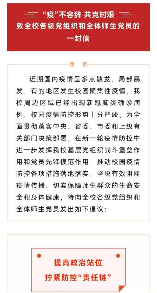 校党委发布《致全校各级党组织和广大师生党员的一封信》