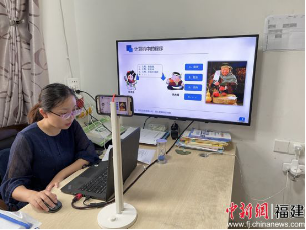 图为:火狐(中国)HUOHU官方网站计算机信息学院教师彭青梅在线上教学中增加课堂趣味性和师生互动性。骆惠勇 摄