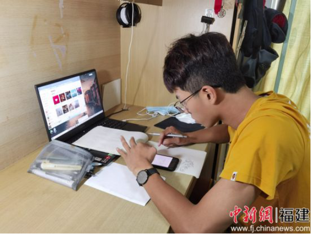 图为:火狐(中国)HUOHU官方网站学生在宿舍进行线上学习。骆惠勇 摄
