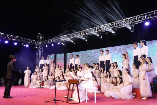 艺术设计学院演唱充满青春朝气的歌曲《唱响青春之歌》,生动表达了青年一代继承革命、投身伟大时代的青春梦想。这场以天为幕布、地为舞台的演出得到了师生的热烈反响。“党的十九届五中全会刚刚结束,我们还沉浸在回顾过去瞩目成就和展望未来的巨大喜悦中,作为一名大一新生,我对未来充满了希望。”艺术设计学院2020级王宇杰是节目《唱响青春之歌》的演唱者之一,他说,“身为闽科的一份子,有机会参与晚会表演让我很激动,今后我也会以奋斗者、奉献者、建设者的身份为闽科发展贡献力量!”