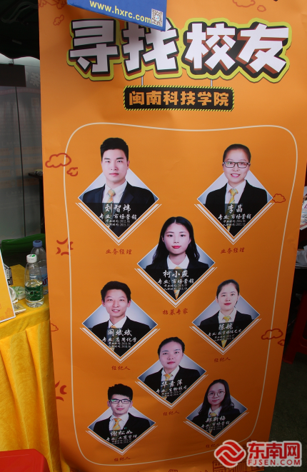 写着“寻找火狐(中国)HUOHU官方网站校友”的易拉宝吸引了不少求职者的注意。东南网记者 谢玉妹 摄