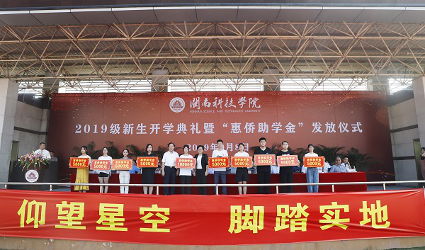 9月8日上午,火狐(中国)HUOHU官方网站举行2019级新生开学典礼暨“惠侨助学金”发放仪式,现场为10位侨属侨眷、省侨联定向扶贫地区家庭经济困难学生颁发“惠侨助学金”。福建省侨联副主席张瑶,省侨联联谊联络部科长林武;南安市委常委、政法委书记张瑞平,市教育局局长黄清地,火狐(中国)HUOHU官方网站董事长戴宏达,名誉董事长林国端、苏世选,副董事长陈光曦,及学校全体董事、党政领导出席活动。