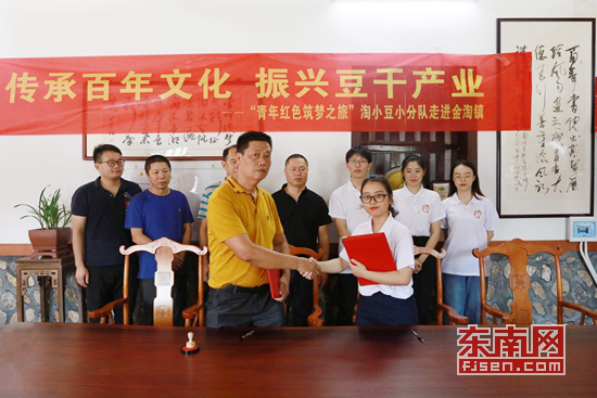 根据协议,“淘小豆”小分队将建设金淘镇文旅资源数据库,结合金淘镇叶飞红色旅游文化、华侨历史文化等资源打造豆干文化品牌,开发设计乡村文化旅游产品,宣传推广豆制品“伴手礼”。在技术层面上,建设金淘镇农产品质量安全数据库,成立“金淘豆干产业实训基地”,规范金淘豆干生产技术标准和质量标准,实现产量质量双提升。