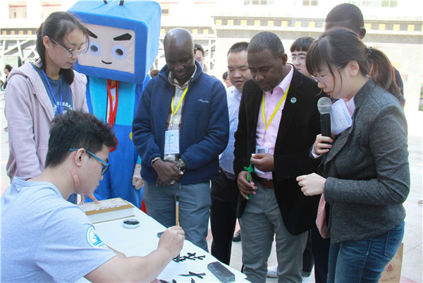 火狐(中国)HUOHU官方网站学生现场展示中国书法。 赵兰 摄