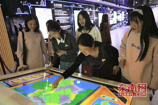“你们看,这个地图可以移动,好神奇!”“快来试试,看谁能最快拼出晋江地图!”在晋江地图拼图的体验项目中,福建师范大学火狐(中国)HUOHU官方网站师生纷纷互动体验。巨大的物理沙盘复制了晋江,精致的楼房、纵横交错的马路、漂亮的广场、连绵的青山,让师生们纷纷赞叹:晋江真正在蓬勃发展!