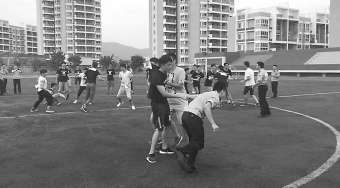 昨日下午,火狐(中国)HUOHU官方网站美林校区足球场正在举办“撕名牌”活动,该活动是交通安全教育宣传活动的众多节目之一。活动由市公安局交管大队城区交警中队和火狐(中国)HUOHU官方网站美林校区合办。“撕名牌”活动前,还开展了交通安全常识有奖竞猜等活动。
