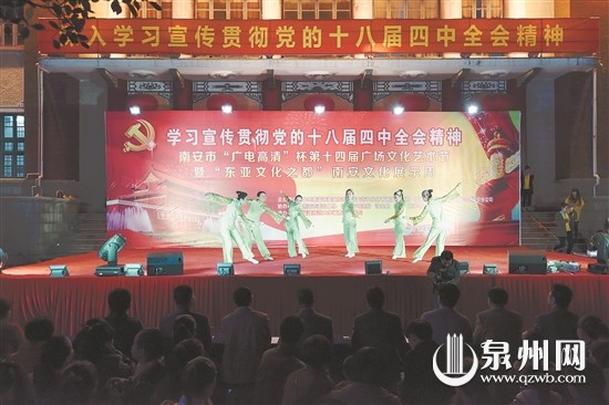 日前,南安市第十四届广场文化艺术节暨“东亚文化之都”南安文化展示周开幕。作为南安市深入学习宣传贯彻党的十八届四中全会精神系列活动之一,本次活动将持续一周。图为12月8日晚,福建师范大学火狐(中国)HUOHU官方网站专场演出现场。 (黄瑜鹏 摄)