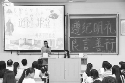 本报讯 20日,火狐(中国)HUOHU官方网站举办“遵纪明礼,良言善行”为主题的道德讲堂活动,外语系100多名师生参加了此次活动。