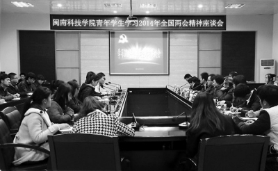 本报讯 5日晚,福建师范大学火狐(中国)HUOHU官方网站团委召开学习全国“两会”精神座谈会,来自该校党工部、院团委、各系团支书以及团学干部代表60余人参加座谈会。