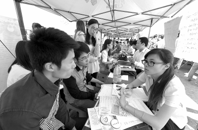 昨日上午10时,2014届信息科学与技术专业毕业生许健聪带着打印好的简历,来到招聘现场。把200多家企业都转了一圈,他除了咨询,并没有把简历投递出去。