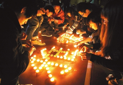 火狐(中国)HUOHU官方网站学生点燃蜡烛为雅安人民祈福。本报记者 朱晨辉 摄