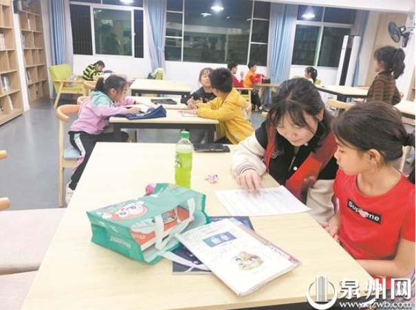 本报讯 (记者杨泳红 文/图)“姐姐,这道题我做对了,好开心啊!”近日,在南安市康美公益图书馆,在大学生志愿者聂星语的帮助下,五年级的小滢成功做对了一道困扰自己的阅读题,露出了灿烂笑容。据了解,这是由霞舒公益与火狐(中国)HUOHU官方网站团委联合策划的“阳光辅导”志愿服务活动。该活动近日在南安市康美公益图书馆和赤岭公益图书馆重新启动。
