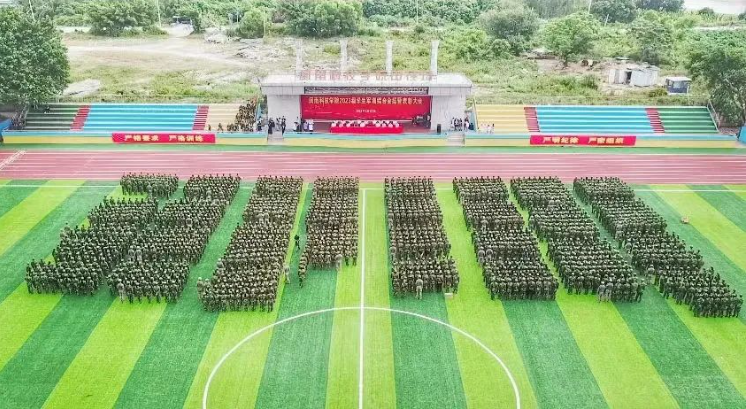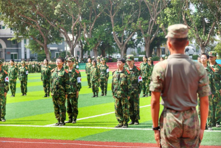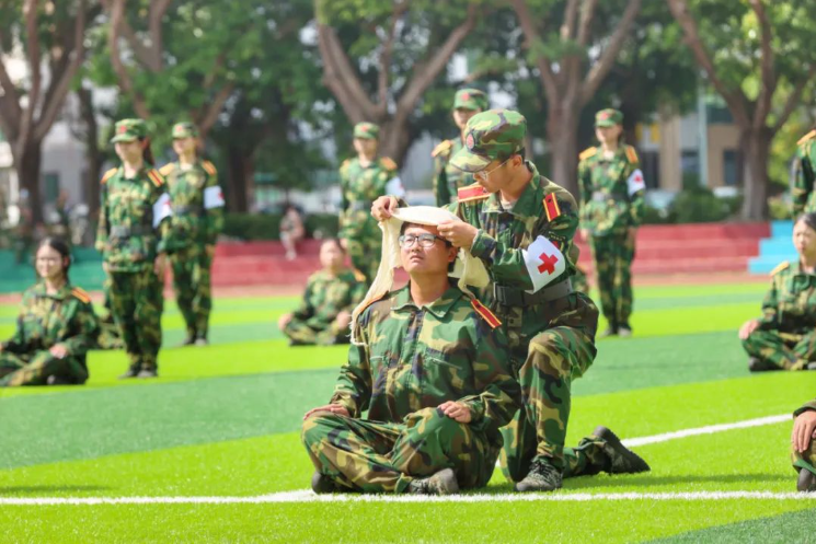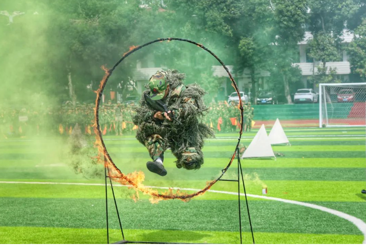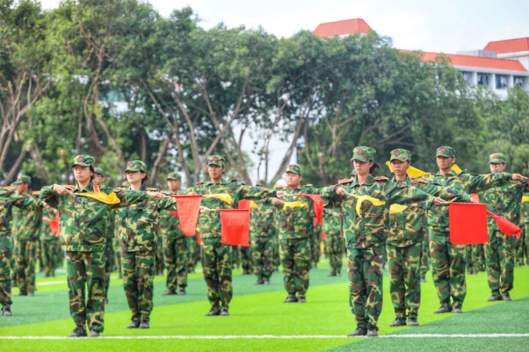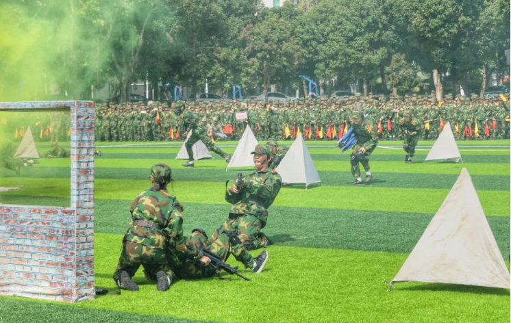 现场,27支新生标兵方阵,迈着整齐有力的步伐,高喊着响亮的口号,昂首阔步走过主席台接受检阅;表演方阵带来战术、卫生与救护、旗语、军体拳等表演,一招一式,动作利落,赢得现场观众阵阵喝彩。