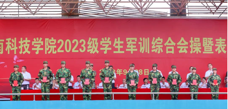 会操后,与会领导对参训的同学们敢于吃苦、奋力拼搏的精神给予充分肯定,并为军训中各类先进集体及优秀个人进行表彰和颁奖。其中,汉语言文学专业获得分列式表演第一名;食品科学与工程专业在军训歌咏比赛中获得第一名。