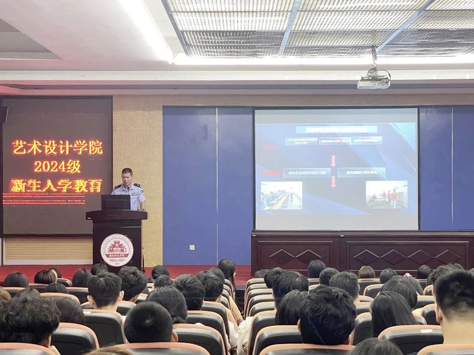 在安全法治教育课中,南安市公安局柳城派出所三级警长黄评波以“反诈筑防线,艺设青春绽华彩”为题,结合丰富的案例,详细剖析了当前常见的电信网络诈骗手法,帮助新生们防范电信诈骗,提升反诈意识。