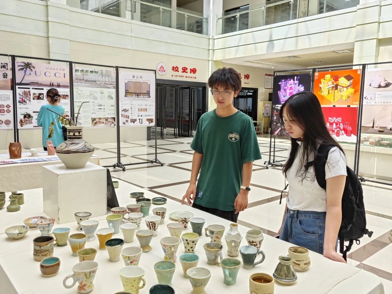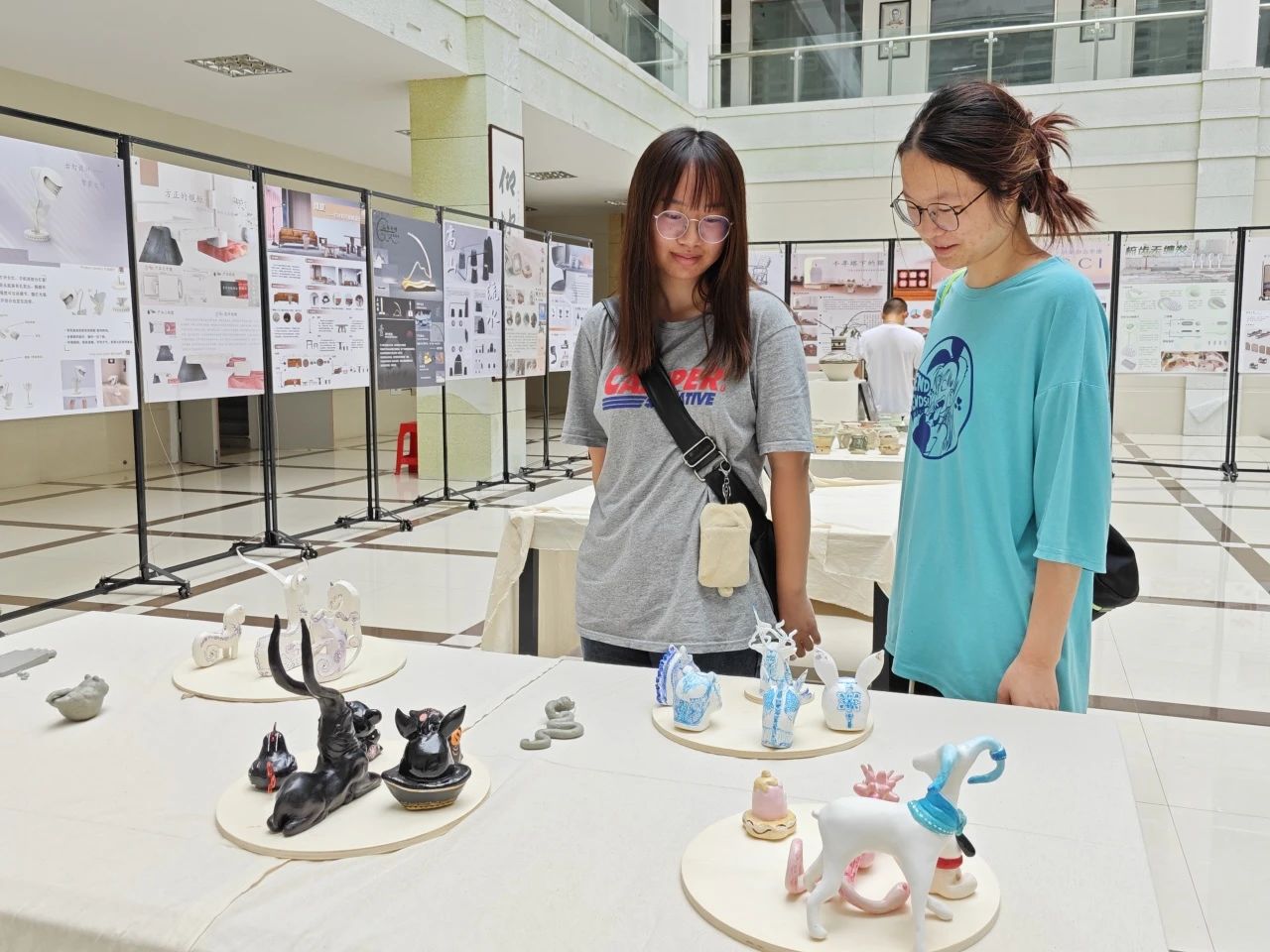 本次课程展共展出80余件设计作品,学生们围绕模型制作、改良设计、产品工艺基础等专业课程内容,创作了涵盖创意设计、陶艺瓶罐、手工泥塑、漆器画作等精美作品,不仅是对学生们学习成果的集中展示,更彰显了艺术设计学院教学多样性和实践性。展览将持续到10月8日。