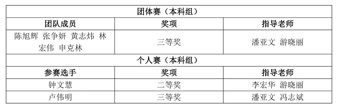 近日,第十一届海峡两岸暨港澳大学生职业技能(能力)大赛智能嵌入式系统比赛在厦门大学举行。我校光电信息学院参赛选手在团体赛(本科组)中获三等奖1项,个人赛(本科组)中分别获二等奖1项、三等奖1项。