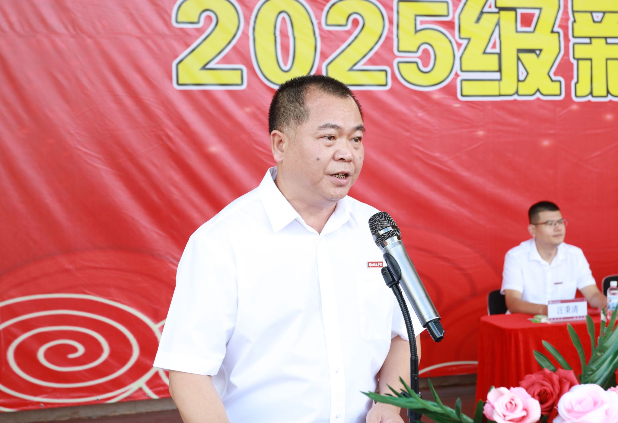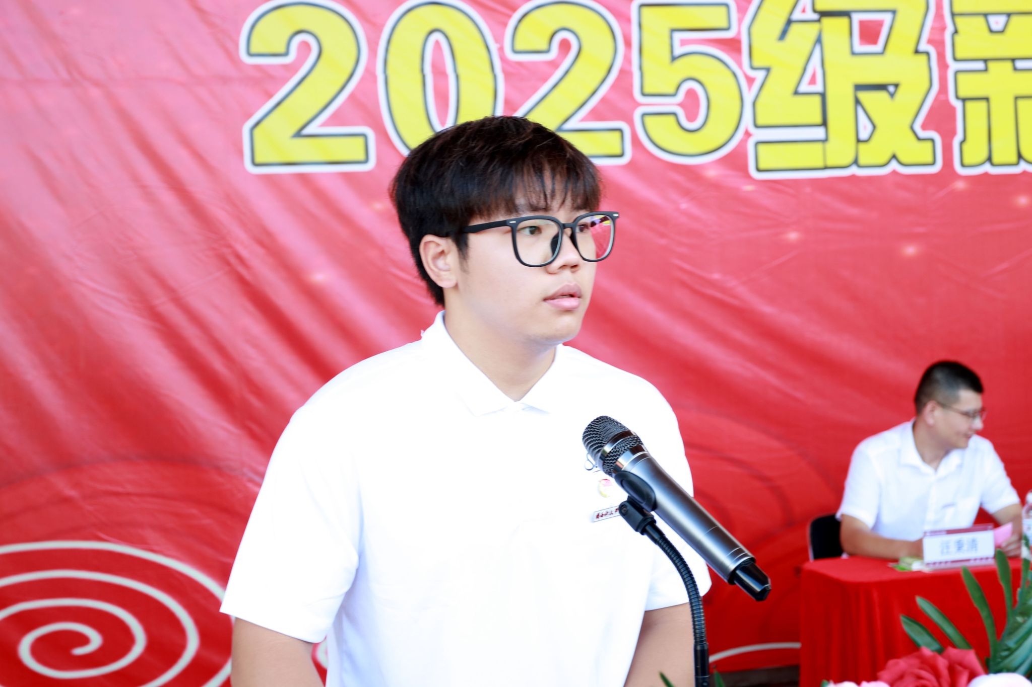 承训部队史立哲少校作军训动员讲话。生命科学与化学学院院长戴玉梅教授作为教师代表,校学生会执行主席、艺术设计学院2023级产品设计专业易云聪同学作为老生代表、商学院2025级市场营销专业林诗琪同学作为新生代表分别发言。