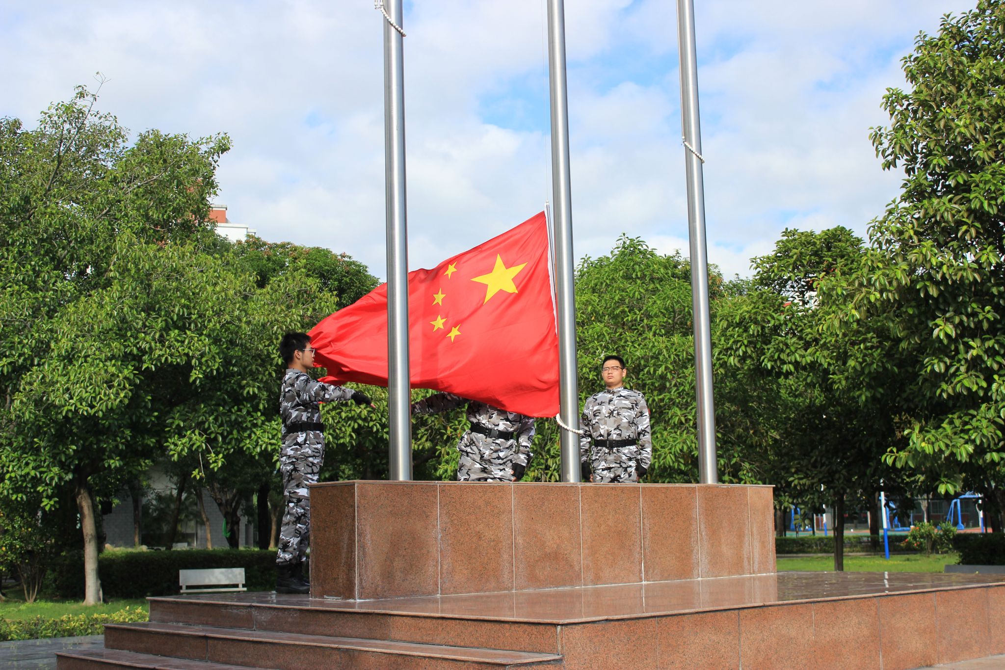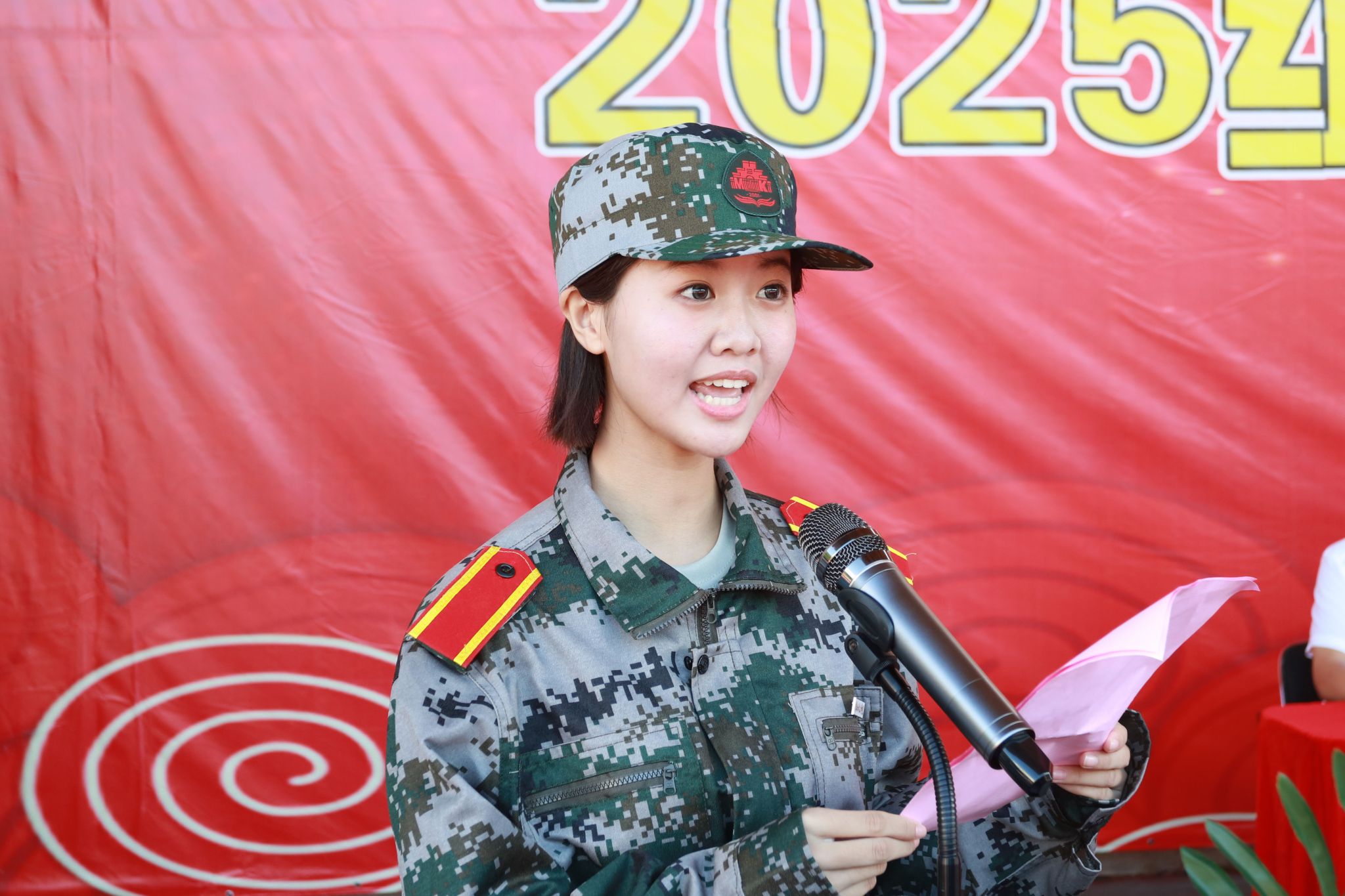 2025级新生军训正式开始,希望同学们服从命令、听从指挥,牢固树立安全意识,认真完成训练任务,以严明的纪律作风扣好大学的第一粒扣子,传承抗战精神,磨砺坚强意志,锤炼优秀品格,以昂扬斗志书写属于自己的青春篇章。