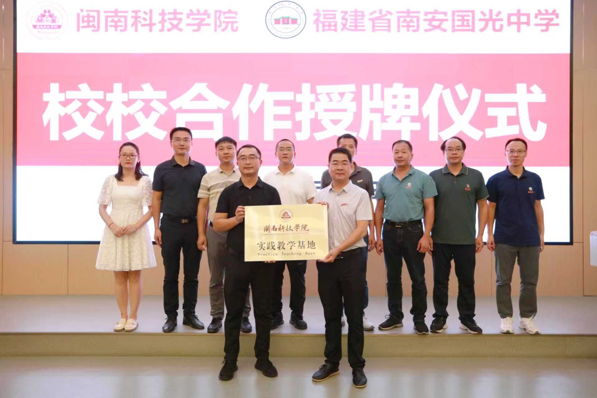 9月27日上午,我校举行与南安国光中学共建实践教学基地签约授牌仪式。南安国光中学副校长黄明通、教务处主任陈建福等,我校校长助理、教务处处长刘武强,教务处、计算机信息学院相关负责人出席活动。国光中学50余名初一学生代表与我校师生代表一同见证合作启幕。