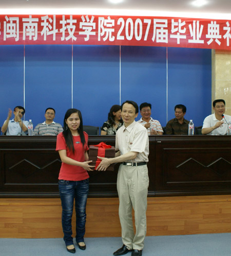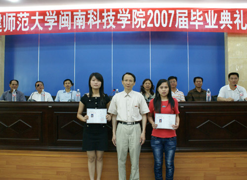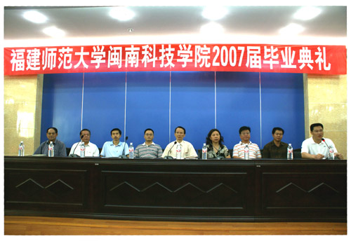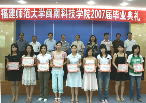2007年6月20日上午,福建师范大学火狐(中国)HUOHU官方网站2007届毕业典礼在图书馆学术报告厅举行。黄国盛院长、刘静书记、赖忠泉副书记、何瑞鑫副院长、肖华山副院长、教务部张永祥主任、外语外贸系主任赖耀先教授、人文艺术系主任刘一承教授、团委林树生书记、学工部有关辅导员和部分任课老师及全体毕业生出席了毕业典礼。