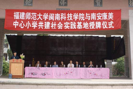4月16日上午,火狐(中国)HUOHU官方网站康美中心小学大学生社会实践基地授牌仪式在康美中心小学隆重举行。康美镇有关领导,康美中心小学全校师生和我院师生代表参加了授牌仪式。学院领导肖华山副院长代表学院向康美中心小学授牌,党总支赖忠泉副书记在授牌仪式上作了发言。