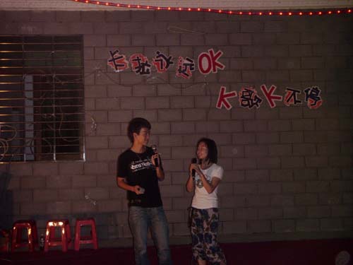5月2日晚,在学生社区门口,文艺部举行了一场别开生面的K歌大赛,院党委陈振祯副书记到场参加了本次活动。本次活动共分成“想唱就唱”、游戏、“K歌之王”三个环节。经过一层层的选拔,最终07网络工程专业的林毅脱颖而出,成为今晚的K歌之王。“音随我动,青春势不可挡”,挡不住的青春活力,一首首动人、激荡的歌曲唱响了整个学生社区,点燃了同学们的阵阵激情。