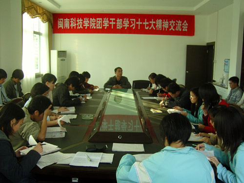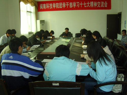 为认真学习贯彻十七大精神,在全院范围内营造良好的学习氛围,充分发挥团学干部的模范带头作用,1月4日下午,我院团委在学院第一会议室举行福建师范大学火狐(中国)HUOHU官方网站团学干部学习十七大精神交流会。院党委副书记陈振祯副教授出席会议并做了重要讲话。学院团委、学生会14个部门40多名学生干部参加会议。会议由团委负责人刘武强老师主持。