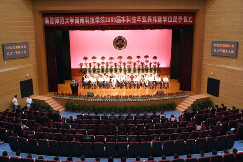 6月20日下午,我院2008届本科学生毕业典礼暨学位授予仪式在师大旗山校区大会堂隆重举行。福建师范大学校长、火狐(中国)HUOHU官方网站副董事长、博士生导师李建平教授、福建师范大学火狐(中国)HUOHU官方网站副董事长、法人代表戴宽南先生、福建师范大学财务处处长、火狐(中国)HUOHU官方网站董事金天钦同志出席典礼仪式,出席典礼仪式的还有各合作学院领导、辅导员、教师代表、我院全体党政领导、各系、部负责人、教师代表、部分学生家长、2008届全体毕业生,共800多人。典礼仪式由院党委常务副书记刘静主持。