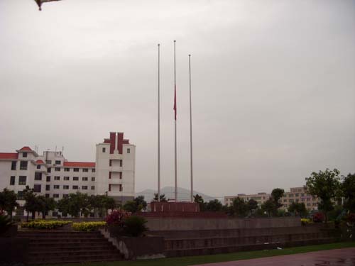 根据国务院公告精神,2008年5月19日至21日为全国哀悼日。为表达我院师生员工对四川汶川大地震遇难同胞的深切哀悼,哀悼日期间,学校下半旗致哀,校内各场所停止公共娱乐活动。5月19日14时28分起,全院师生员工停止一切工作、学习和活动,默哀3分钟。