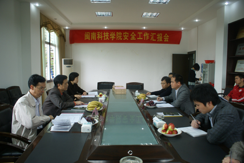 首先,周勇军副院长代表学院董事会、学院师生对各位专家的到来表示热烈的欢迎,向长期以来关心和支持我院建设和发展的各级部门表示诚挚的感谢。接着,周勇军副院长主要从学校及周边安全责任制落实、校园消防安全、接送学生车辆安全、学校设施、场地安全、校舍及其他构筑物安全、校园安全管理、校园周边安全、安全教育落实食品卫生安全等九个方面进行了详细的汇报。并就东溪河岸安全隐患、征地工作与地方村民的利益冲突的安全隐患、校门口交通安全隐患及学生自我安全防范意识较差等目前我院校园安全工作必须重点抓好的几个问题向检查组做了简要汇报。