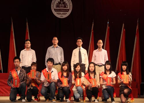 大会表彰了过去一年来组织建设、学风建设、校园文化、素质拓展和实践服务五个方面取得突出成绩的先进集体和先进个人。100多名获奖代表身披绶带依次上台接受领导颁奖,其中,学院福建省“五四红旗团支部”、福建省“优秀共青团员”、学院“十佳大学生”、学院“自强之星”等荣誉在舞台灯光的衬托下显得光彩夺目。在颁奖环节中穿插着精彩的文艺表演成为一大亮点。动感的舞蹈《THE BOYS》、有氧拉丁《摇曳》给现场观众视觉上的巨大冲击;女声三重唱《东岸西岸》、歌曲串烧《我相信》回旋于耳;