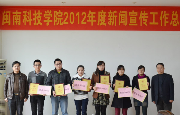 李彬源宣读了《关于公布2012年学院校园网二级网站评比结果的通知》。与会领导为6个获奖单位颁发奖牌和奖金。