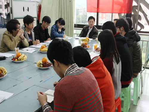 ,学院团员工作茶话会在学生两委办公室举行。党委副书记李彬源、团委书记刘武强、副书记庄天怀、有关老师以及学生团员代表齐聚一堂,共同探讨“如何完善我院的团学工作”这一主题。