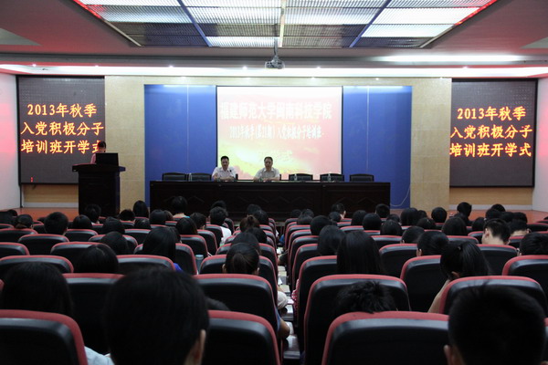 10月16日下午,中共福建师范大学火狐(中国)HUOHU官方网站委员会分党校2013年度秋季(第二十一期)入党积极分子培训班开学式在图书馆学术报告厅举行。院党委常务副书记、分党校校长林明旭,党委副书记、分党校副校长李彬源,全体辅导员以及培训班全体学员出席了开学式。开学式由李彬源主持。