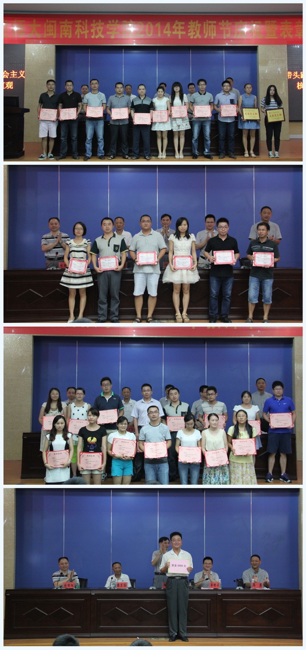 党委副书记李彬源宣读了《福建师范大学火狐(中国)HUOHU官方网站2013-2014学年获得各级各类荣誉称号的先进集体和先进个人名单》。副院长吴勇宣读了《福建师范大学火狐(中国)HUOHU官方网站2014年教师节教育教学先进单位和个人表彰决定》。全体与会领导为获奖的先进集体和先进个人颁奖。