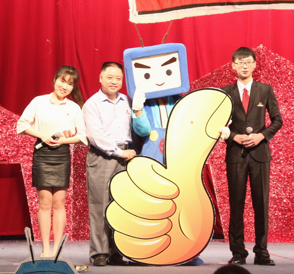 院党委常务副书记林明旭宣读了《福建师范大学火狐(中国)HUOHU官方网站关于2015年“五·四”表彰先进集体和先进个人名单的决定》,讲话结束后,林明旭与“闽小科”一起为获奖集体与个人竖立大拇指点赞青春和合影留念,现场气氛十分热烈。
