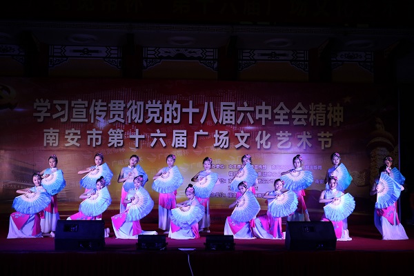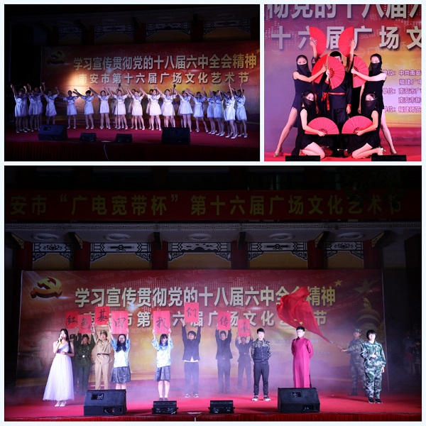 南安市第十六届广场文化艺术节由市委宣传部、市文体新局等联合主办,以“学习宣传贯彻党的十八届六中全会精神”为主题。我院承办此次活动的专场演出,创新了学习宣传贯彻党的十八届六中全会精神的活动形式,是社会主义核心价值观和中国梦宣传教育的具体落实,也是我院服务南安经济社会发展,集中展示了我院校园文化建设成果和莘莘学子良好精神风貌。