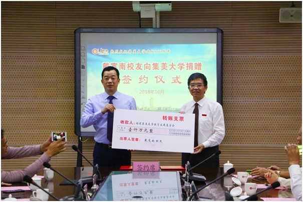 10月11日,在集美大学百年校庆之际,我院副董事长戴宽南副教授为其母校集美大学捐赠一千万元,设立“集美大学戴宽南教助学基金”,用于奖励集美大学优秀教师、补助品学兼优的困难学生和支持母校的建设发展。