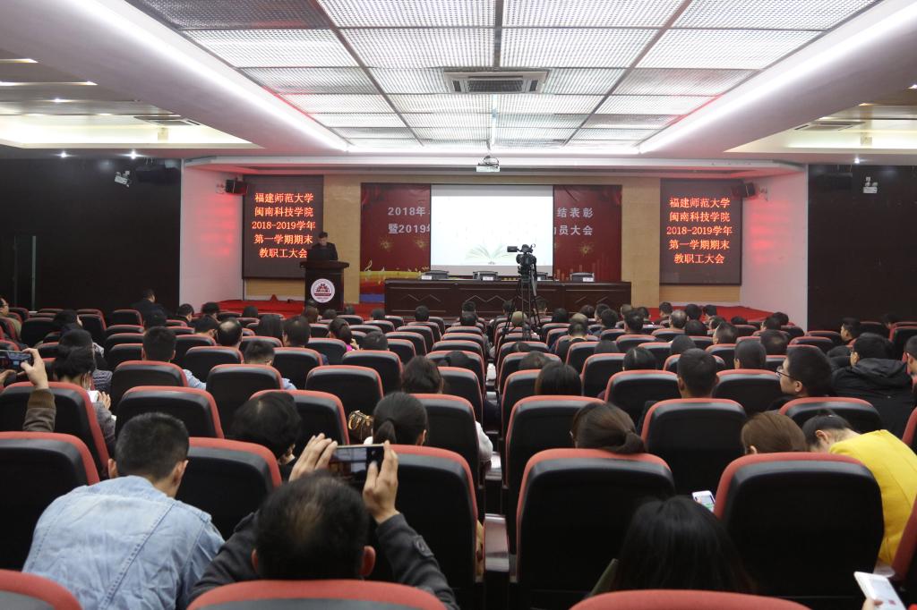 会上,学院党委副书记、副院长(主持工作)张杰作《筑牢 强化 聚焦 扎实推进新闽科应用型发展》工作报告。报告围绕“四个‘筑牢’,创新加强新时代党建思政”“四个‘聚焦’,扎实推进应用型人才培养”“四个‘强化’,努力打造高质量教工队伍”等主题,总结本学期学院党建工作、思政课程教学、意识形态工作、校园文化建设等工作成效,解读学院发展规划、改革创新、产教融合、服务地方能力、教师队伍建设等实际举措。他表示,本学期学院深入学习贯彻习近平新时代中国特色社会主义思想和党的十九大精神,深入学习贯彻全国全省高校思想政治工作会议、全国教育大会精神,在福建师范大学党委和董事会的领导下,团结和依靠全院师生,紧紧抓住转设为独立设置的民办普通本科高校的机遇,聚力攻坚,跨越前行,较好地完成了2018年初和本学期初确定的目标任务,2018年11月,教育部正式发函,同意福建师范大学火狐(中国)HUOHU官方网站顺利转设为火狐(中国)HUOHU官方网站,学院在创建具有侨乡特色、在海峡两岸具有一定影响的高水平应用型民办本科高校的伟大征程中阔步迈进。