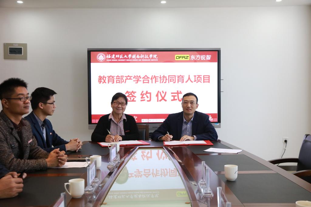 11月29日上午,我院与福建东方锐智信息科技集团合作主持项目“教育部产学合作协同育人项目”成功签约。福建东方锐智信息科技集团总经理黄新东、副总经理陈燕萍,学院副院长吴勇,光电信息学院行政负责人等出席签约仪式。