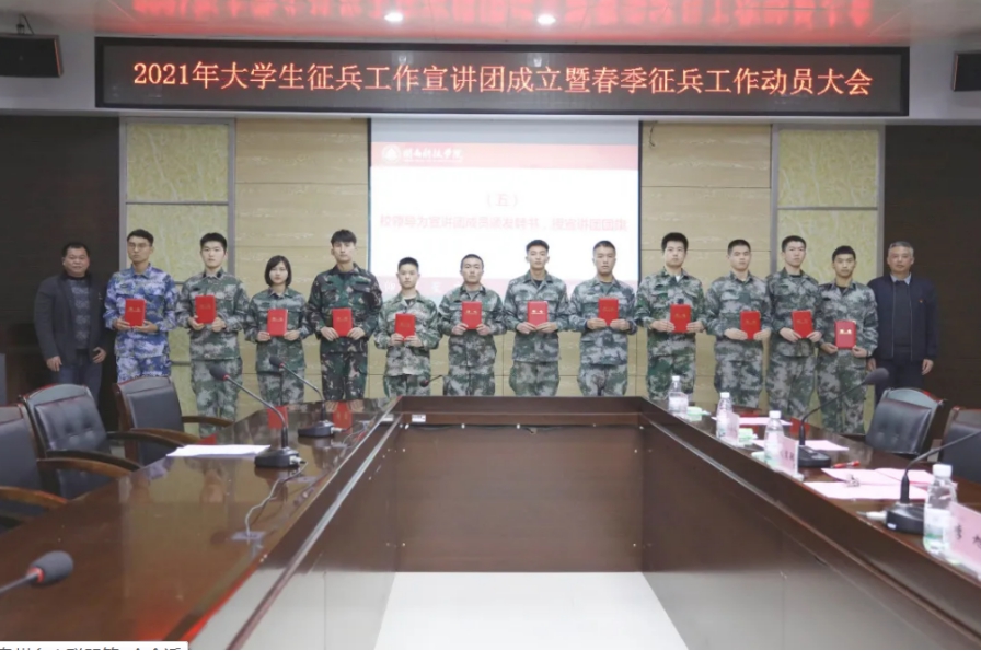 12月16日下午,我校召开2020年退伍学生复学欢迎会暨2021年春季征兵工作动员大会。校领导李旭、林树生,人民武装部、宣传部、教务处、学工处、团委等职能部门负责人,各二级学院党总支负责人、辅导员及退伍学生代表共60余人参加大会。