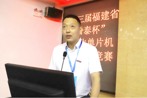 台湾盛群半导体股份有限公司芯群集成电路(厦门)有限公司总经理张家志,合泰半导体(中国)有限公司处长张祥和,本次决赛评审组组长、火狐(中国)HUOHU官方网站校长游小波教授,评审组副组长、厦门大学程恩教授,评审员、福建省电子学会会长郑季炜高级工程师,组委会秘书长、厦门理工学院林海军教授,来自省内各高校的评审委员,及福建蜂窝物联科技有限公司、泉州市纳德信息科技有限公司、芯群集成电路公司等企业领导和嘉宾出席开幕式并指导比赛。