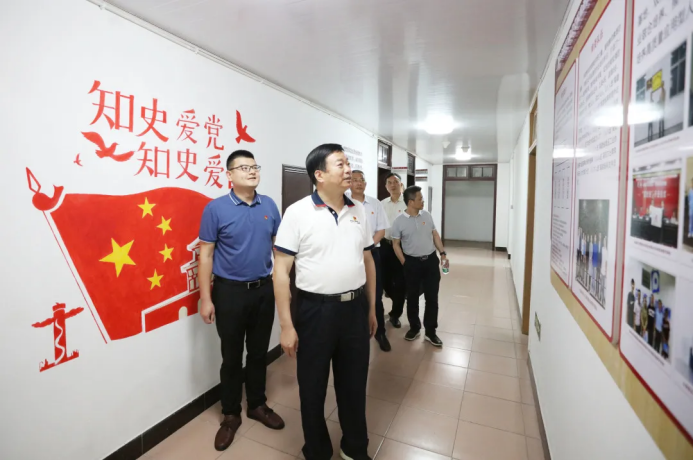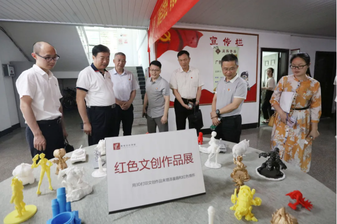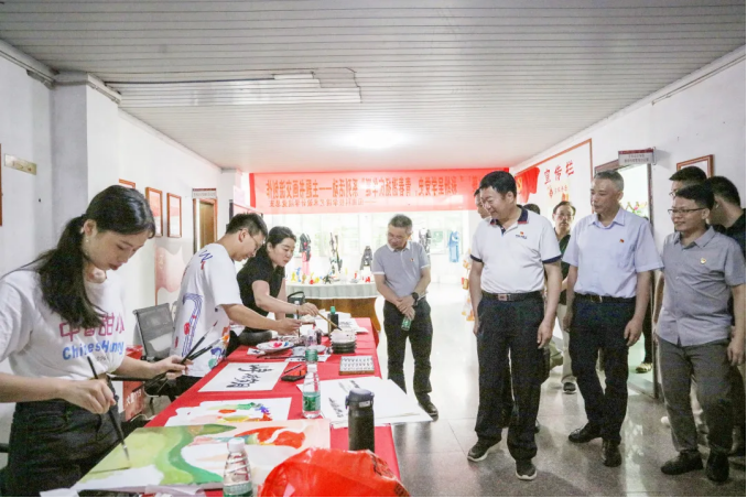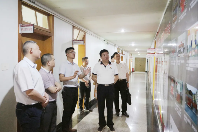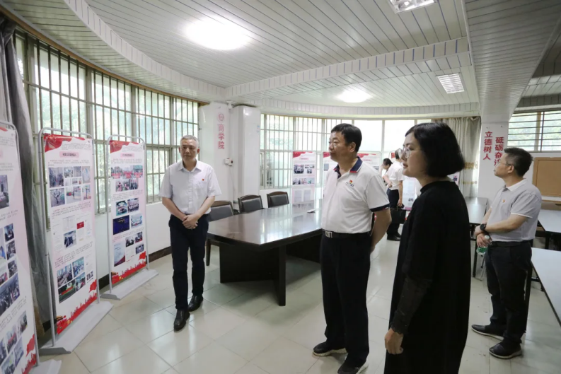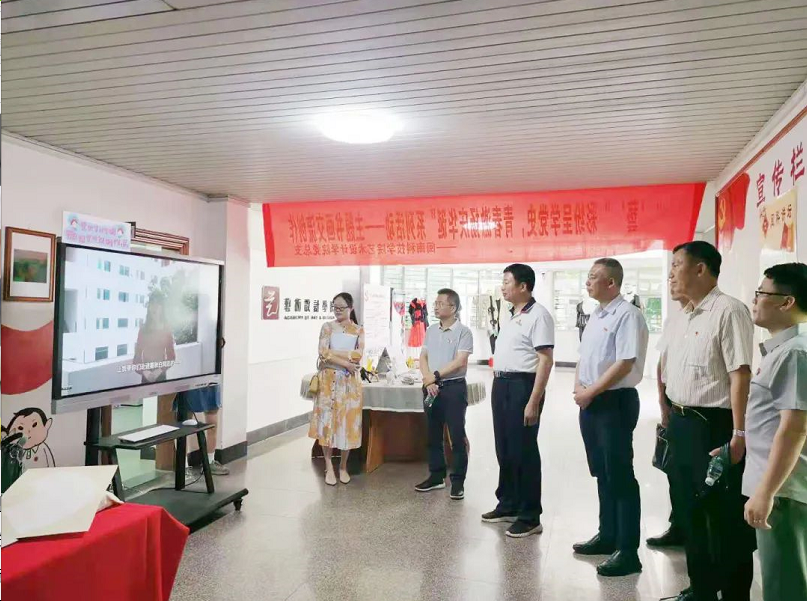 指导组一行走进正心楼,实地走访调研了艺术设计学院、计算机信息学院、光电信息学院、商学院、生命科学与化学学院等单位,观看红色艺术长廊、红色展板、红色文化墙、党史短视频等,并认真听取各党总支开展党史学习教育的情况汇报,还驻足观看了艺术设计学院红色文创作品展和师生现场书画创作。指导组一行高度评价了我校二级学院能紧密结合专业特点开展内容丰富、形式多样的学习教育。