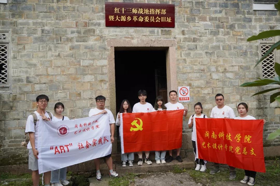 7月10日-7月17日,艺术设计学院“ART”暑期社会实践队前往中央苏区县——三明市泰宁县新桥乡,开展“寻访红色记忆,传承红色基因”主题暑期社会实践活动,活动围绕红色研学、模范学习、宣讲实践、直播课堂等内容,将暑期社会实践活动与党史学习教育相结合,推动党史学习教育走深走实。实践队由艺术设计学院党总支部分党员师生和部分专业学生代表组成。