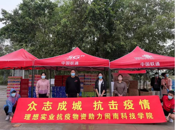 3月26日,南安市女企业家协会暨拥军协会向我校捐赠一批生活物资。其中,戴玉音、梁毓玲和陈小燕一同捐赠的12500元,用于采购60箱牛奶、碗装泡面100箱、大面包3箱、酸奶95箱等生活物资;王美丽捐赠了牙刷200支、牙膏20O支、纸巾200包、矿泉水20箱、面包20箱、口罩4000个;曾惠琴捐赠了谷粒谷力50箱、面包20箱;黄丽月捐赠了牙刷240支、浴巾30块、洗衣液50瓶、一次性浴巾70盒。常务副校长周勇军代表学校参加捐赠仪式。