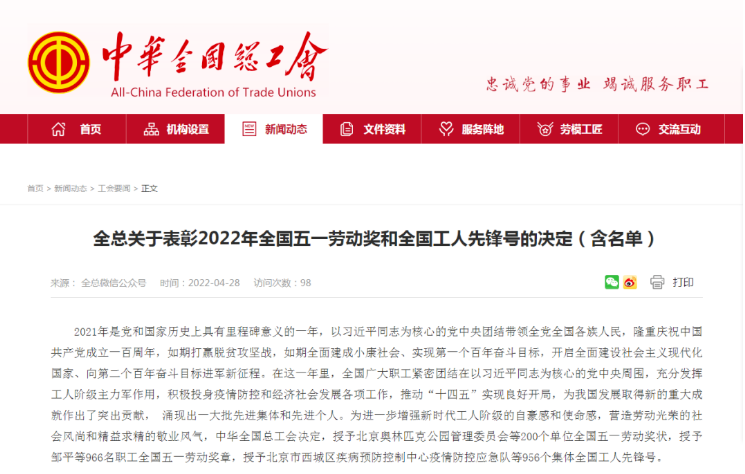 日前,中华全国总工会发布了《全总关于表彰2022年全国五一劳动奖章和全国工人先锋号的决定(含名单)》,我校马克思主义学院副教戴宽南荣获2022年全国五一劳动奖章。