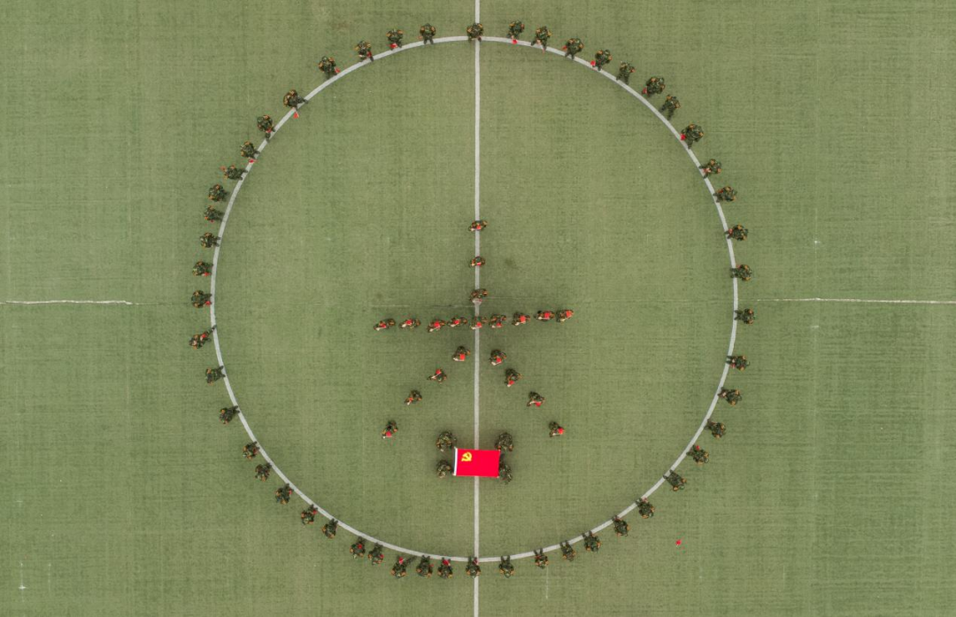 期间,光电信息学院2022级新生以方阵列队的形式,呈现出“二十大”的字样,用青春献礼党的二十大。