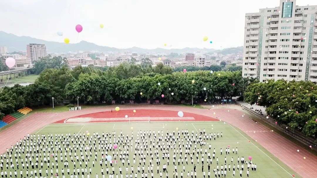 百名学生齐放气球,承载着的大小梦想,传达着对美好未来的向往和憧憬。