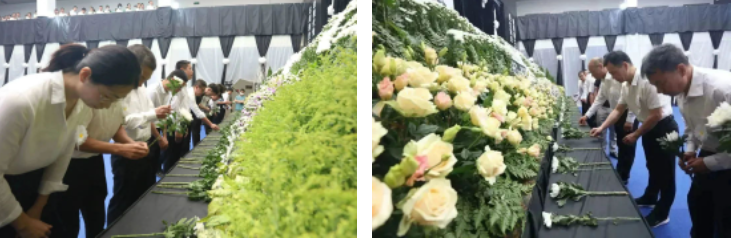 全体参会人员向戴宏达博士遗像行三鞠躬礼、敬献鲜花,以表哀思。
